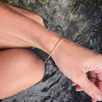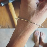 Timelessly classic. A slim, handmade and hand hammered bangle in 14k yellow gold.